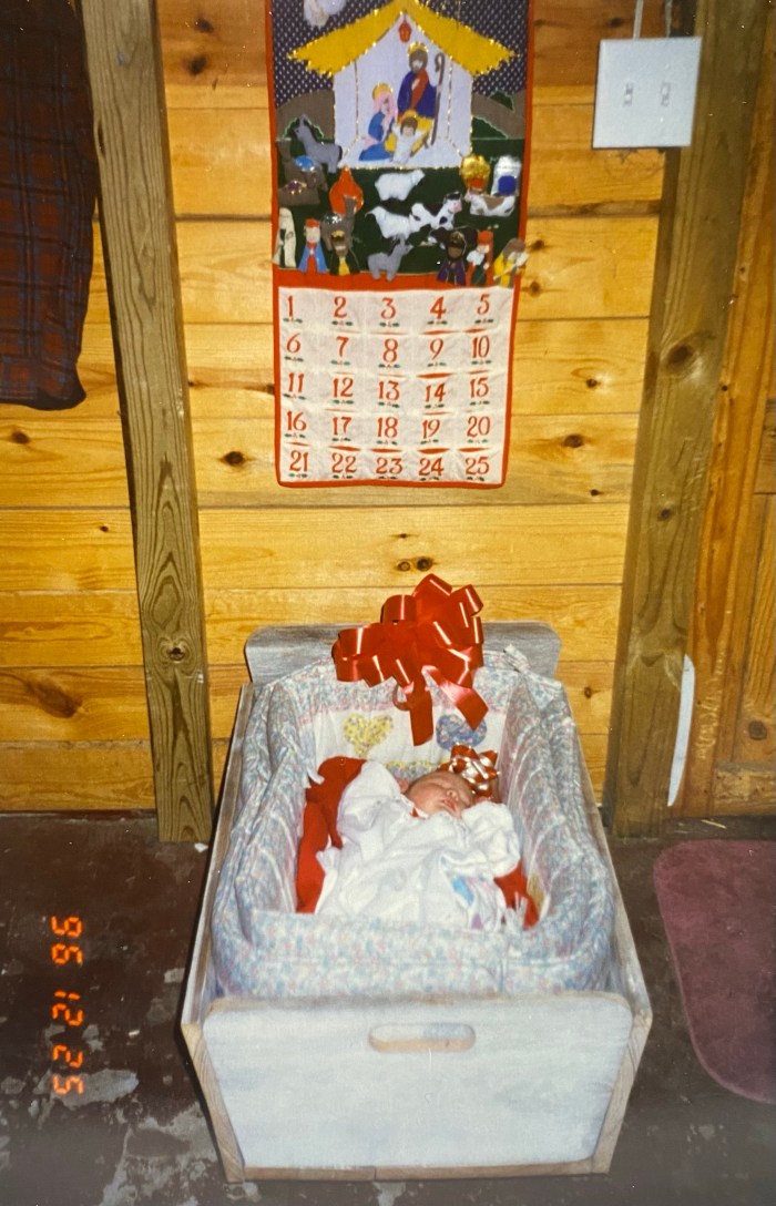 Me and Mackenzie on New Year’s Eve. Her crib and clothes are in the background. We were in our bedroom (stall) π and there wasn’t much room to walk around but we made it work.