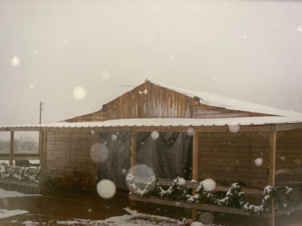 It was kind of like a log cabin except instead of logs the walls were made of untreated 2 x 4’s. Our bedroom was located next to the horse stall and on many an occasion the horse would wake us up by kicking the walls. Ha! We also had a few roosters 🐓 but that was very short lived because they “cock-a-doodled-do” way too early in the morning (I’m talking like 4:00 a.m.) so we gave them away to the first neighbor who would take them!
