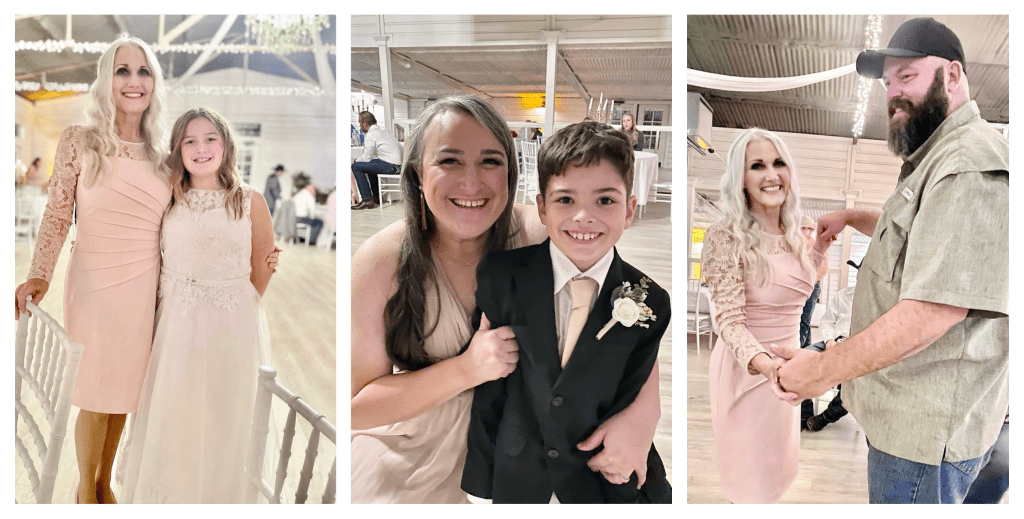 Just minutes earlier, my eyes were filled with tears but it was for a different reason. I was sitting down holding our youngest granddaughter, Remi, while waiting to line up for the ceremony, and she pooped through her diaper and onto my pink dress. Her daddy quickly scooped her up and I ran to the bathroom to scrub my dress in the sink as tears filled my eyes.