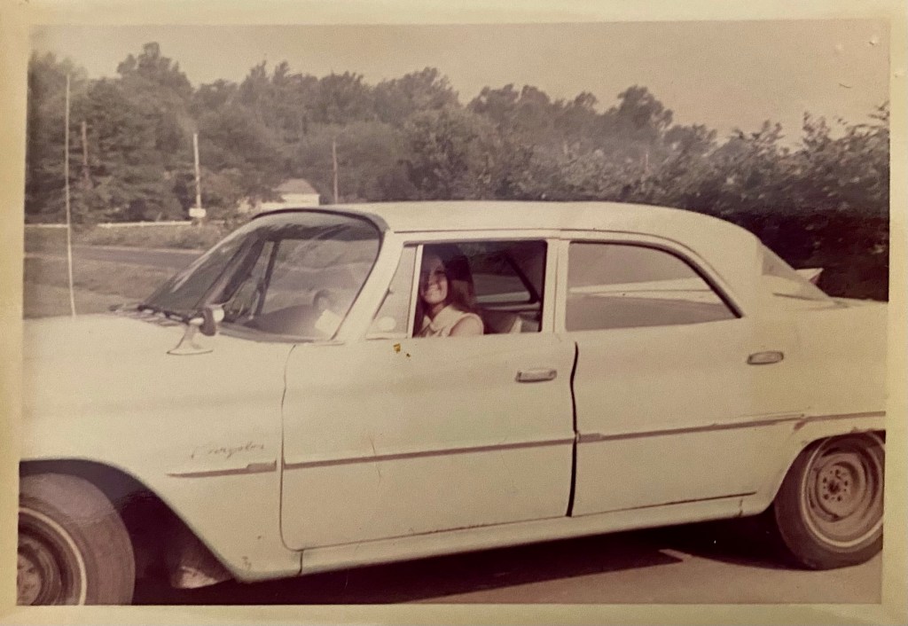 My first car was an old clunker. It was a light blue Chrysler and I’m not sure of the year (late 1950’s or early 1960’s) but it was definitely old. It had what I would describe as “wings” on each side at the rear of the car, and a convenient hole in the driver’s side floorboard where I could empty my soft drinks and coffee. Ha!