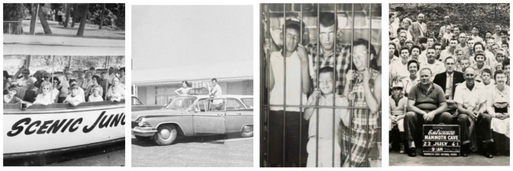 Denny, Ronnie, Dougie, & me “in the lock-up” at Coney Island in Ohio in 1965. Ronnie, dad, Eldon, Dougie, mom, & me, fourth row back at Mammoth Cave National Park near Brownsville, KY in 1961.
