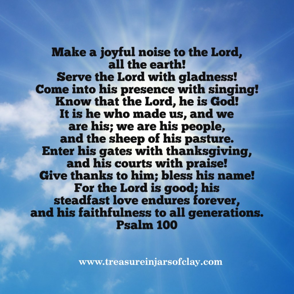 #TuesdayTruthAugust 27: Psalm 100, one of the most well known psalms, reminds us that there is but one God. He is the God of both the Old Testament and the New Testament; he is Jehovah, the God of Abraham, Isaac, Jacob, and the God and Father of our Lord and Savior Jesus Christ. He bought us with his precious blood. We, who are called by his name, are to make a joyful noise unto him and serve him with gladness!