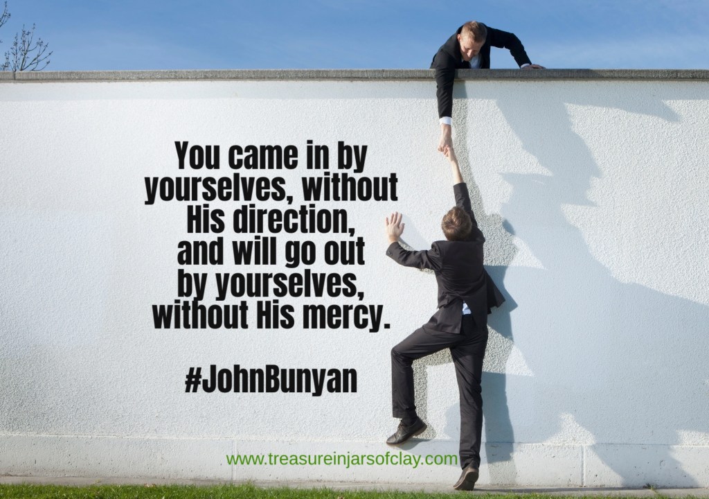 Christian explained, “I walk by the rule of my Master; you walk by the rude working of your own notions. You are condemned as thieves already by the Lord of the way; therefore, I doubt you will be found as true men at the end of the journey. You came in by yourselves, without His direction, and will go out by yourselves, without His mercy.”