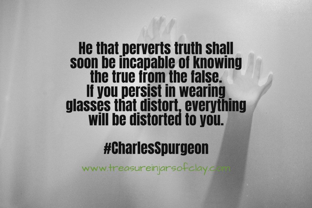 He that perverts truth shall soon be incapable of knowing the true from the false. If you persist in wearing glasses that distort, everything will be distorted to you. #CharlesSpurgeon