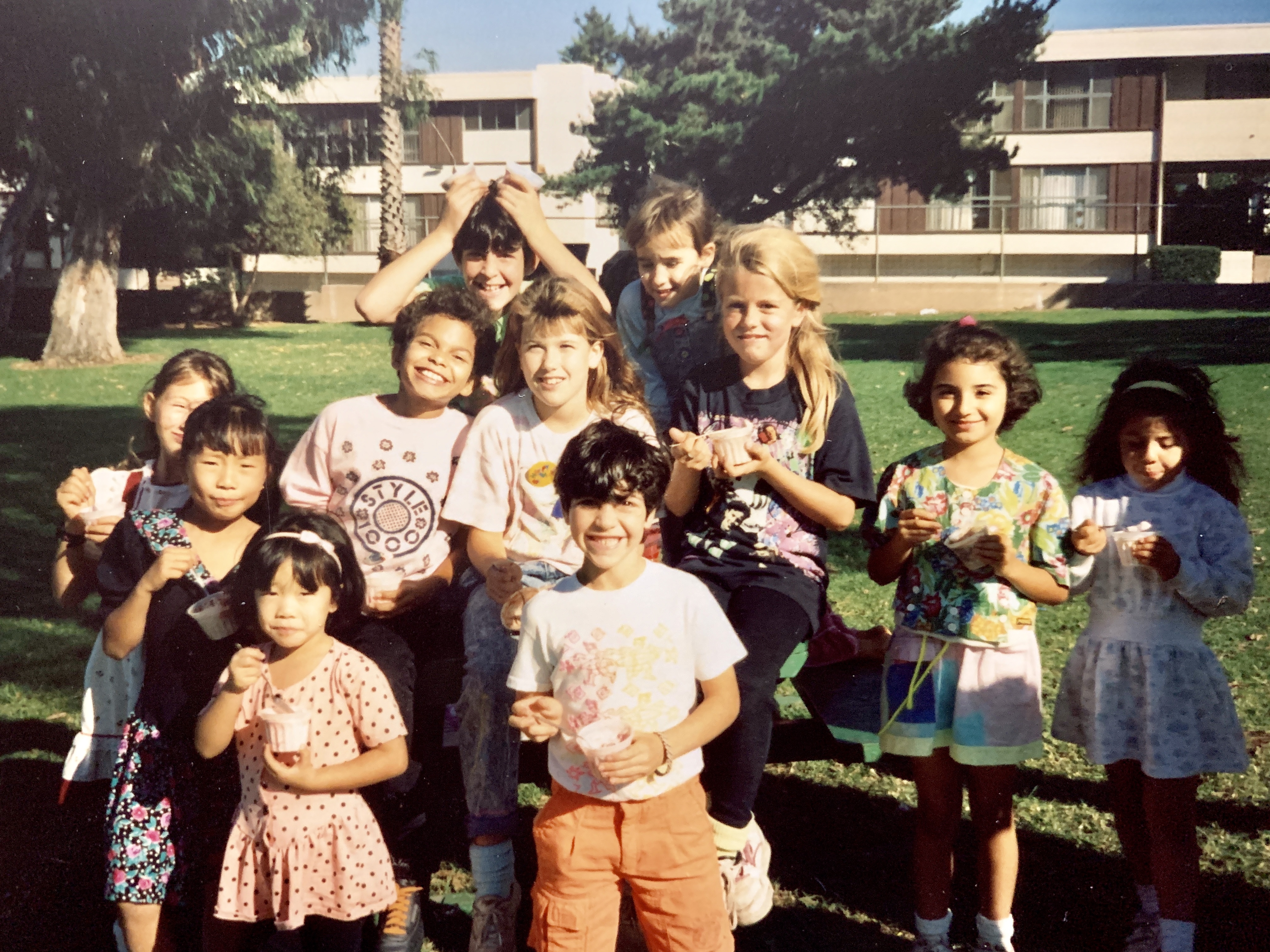 Michelle and Megan with their friends at the park next to our apartment: