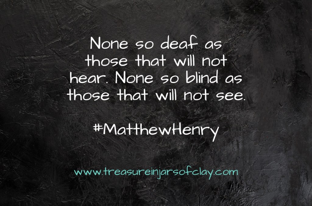 “None so deaf as those that will not hear. None so blind as those that will not see.”